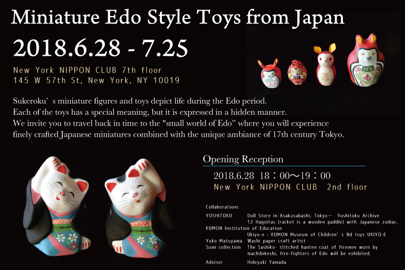 Sukeroku’s miniature figures and toys depict life during the Edo period. Each of the toys has a special meaning, but it is expressed in a hidden manner. We invite you to travel back in time to the "small world of Edo” where you will experience finely crafted Japanese miniatures combined with the unique ambiance of 17th century Tokyo.