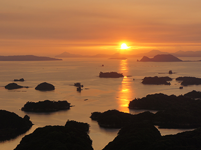 ‘Kujukushima’ literally means ‘99 Islands’ but it actually stands for ‘something uncountable’. In fact, there are 208 islands, both large and small, are clustered together in the National Park.The beautiful scenery and rich natural environment have been protected. Especially the view of the sun slowly setting into the sea is extremely stunning. The evening view was featured prominently in the opening scenes of the film The Last Samurai as an emblem of Japanese coastal beauty. You can take an excursion boat, or enjoy a view of the beautiful green islands floating in the deep blue sea from various observatories.
