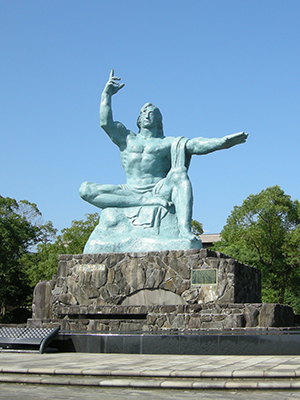 The Nagasaki Peace Park, established in 1955, commemorates the atomic bombing of Nagasaki of August 9, 1945, which wiped out precious lives of 74,000 people and turned affected areas into ashes in an instant. The park is home to the massive Peace Statue which was created to represent the wish for world peace and a vow that such a tragic war would never be repeated. The statue's right hand points to the threat of nuclear weapons while the extended left hand symbolizes eternal peace.