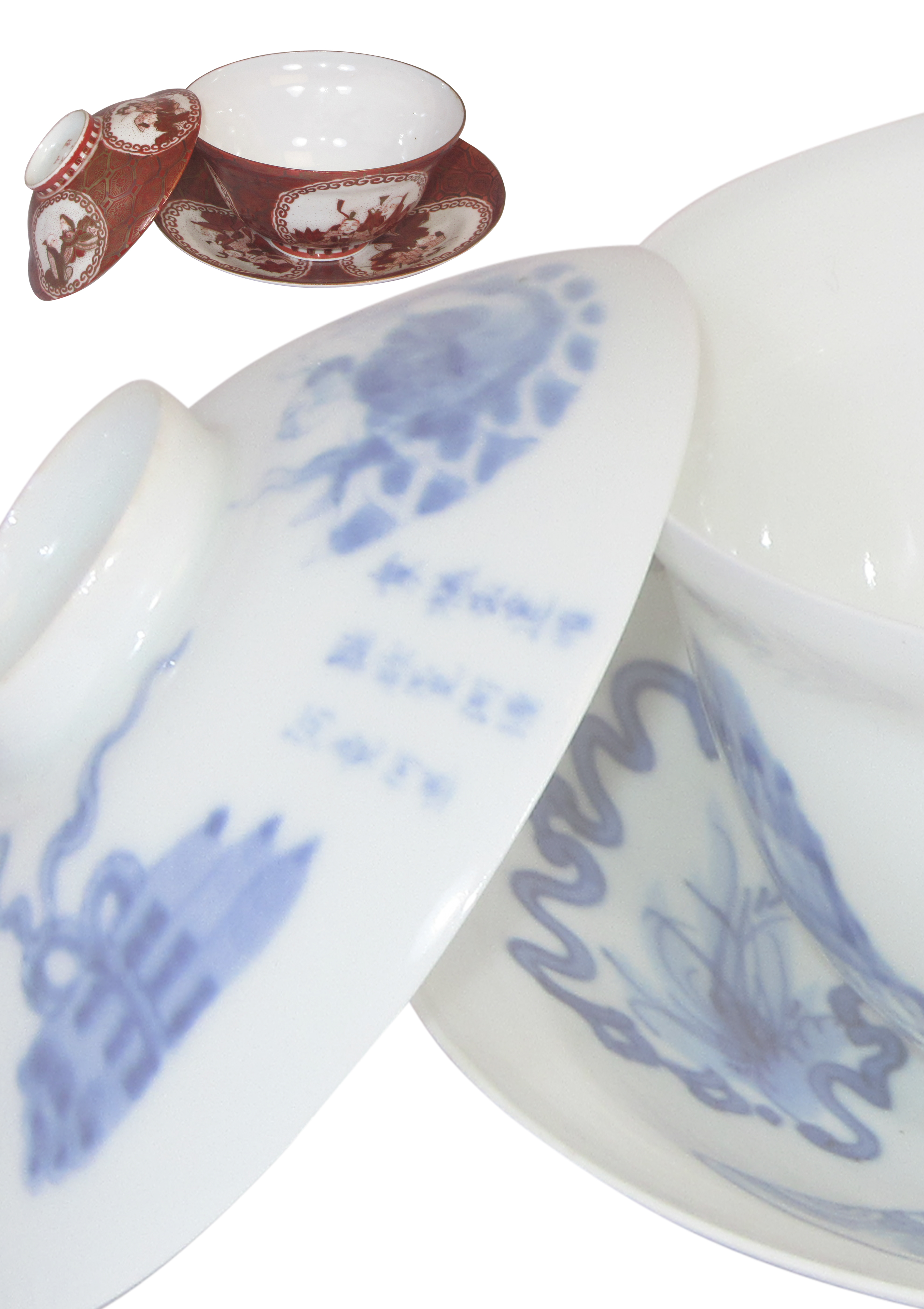 The eggshell porcelain ware is formed by hand throwing on a wheel and then trimmed until the body becomes thin. Checking the thinness with penetrating light is necessary for this trimming process. The ancient records describe that the potters in Edo period used candle light to check thinness of the bodies while they were trimming the eggshell porcelain ware.